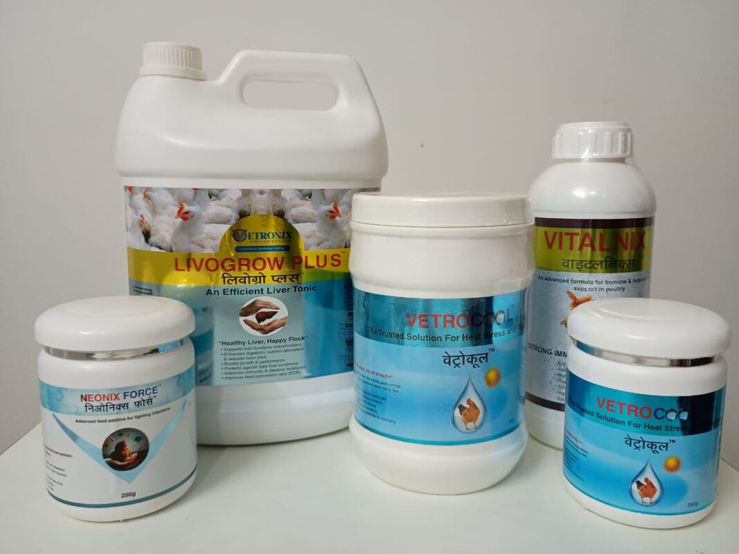 At Vetronix Biotech Pvt. Ltd., we specialize in advancing poultry health with our scientifically formulated range of medicines. Designed to address the unique needs of poultry farming, our products ensure the prevention and treatment of disease, improved productivity, and enhanced overall health. With a commitment to quality, efficacy, and innovation, Vetronix provides reliable solutions to poultry farmers, helping them achieve sustainable growth and success. Trust Vetronix for healthier flocks and thriving poultry businesses.